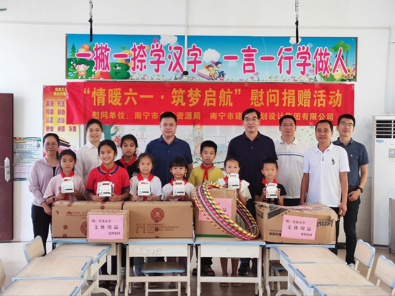5月30日至31日,值此第72個國際兒童節(jié)到來之際,南寧市自然資源局副局長、三級調(diào)研員李伍堅,局黨組成員、副局長蔣東勇分別帶隊到集團(tuán)定點幫扶的上林縣大豐鎮(zhèn)擁軍村玉柴希望小學(xué)、隆安縣古潭鄉(xiāng)育英村小學(xué)開展“情暖六一·筑夢啟航”慰問活動。